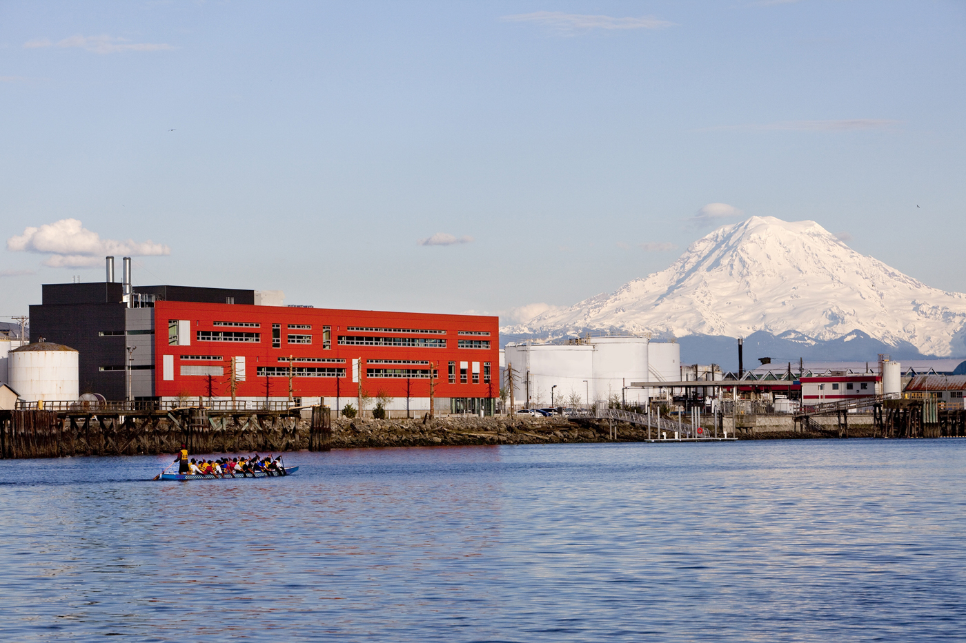 The building houses offices and labs for the city’s Environmental Services science and engineering group, which monitors the long-term health of the Foss Waterway and manages stormwater and runoff throughout the city. The center also houses the University of Washington Environmental Studies group, and the state-sponsored Puget Sound Partnership, which is charged with developing the long-term plan to clean up Puget Sound.