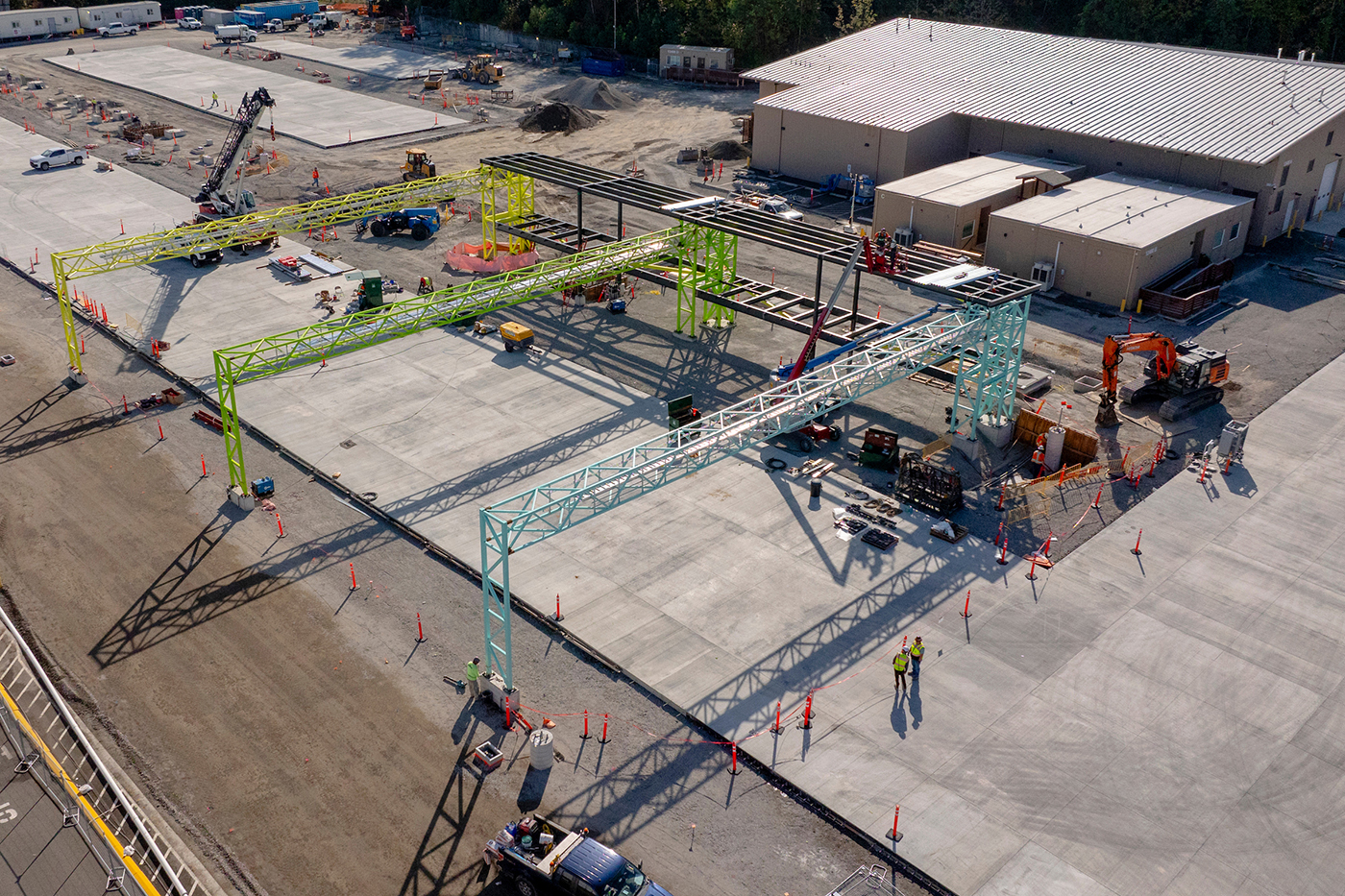 Construction is set to wrap this summer on Tukwila Base, King County Metro's first fully electrified bus base.