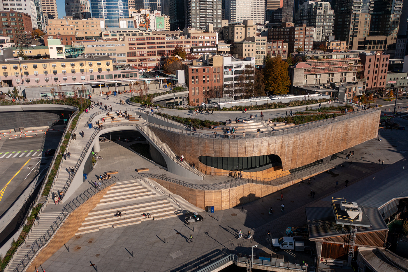 The Seattle Aquarium sits proudly aside the Salish Sea; the naturally durable rain screen of the Ocean Pavilion is starting to develop a beautiful patina as the summer sun and seawater sprays begin to change the façade into a more permanent Pacific Northwest expression.
