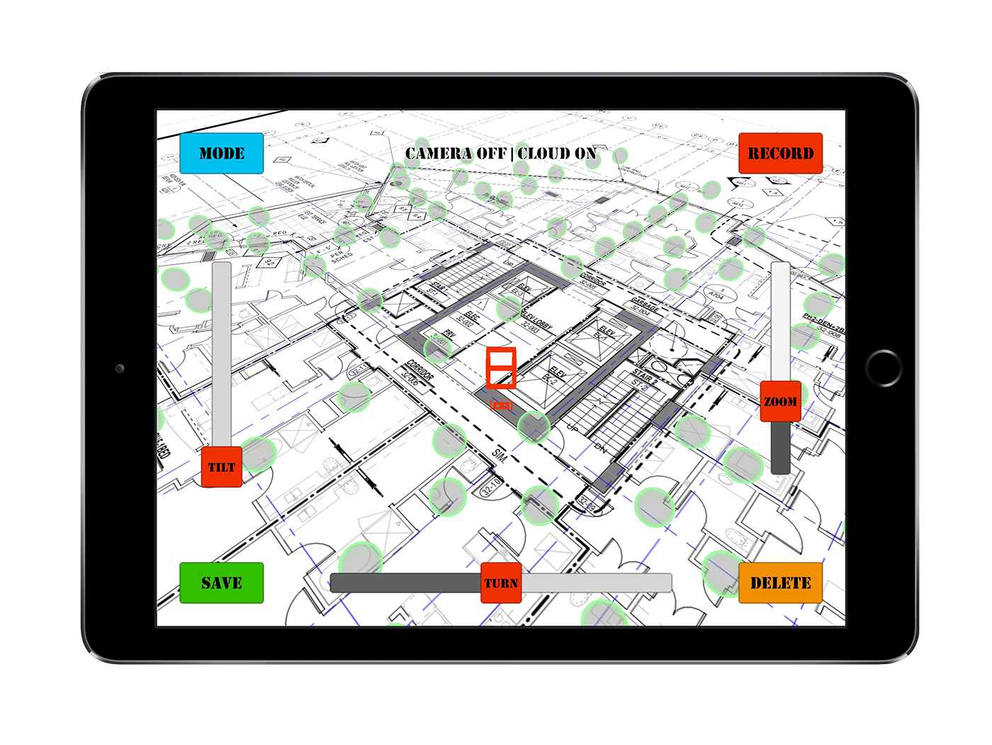Users of the app start by uploading the engineering drawings or floor plans of a building as pdf documents or images. Then they walk through the as-built space, taking photos from a 360-degree camera that interfaces with their phone or tablet to store the images in the cloud.