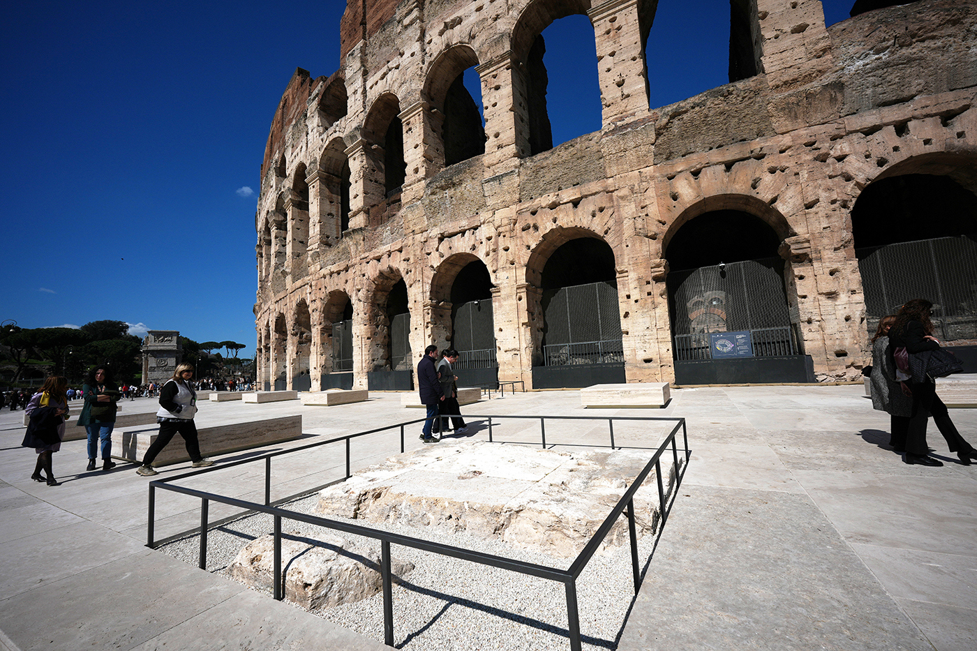 ROME — The Colosseum has a bright new look following a restoration using the same travertine marble of ancient Rome to recreate parts of columns from 2,000 years ago.