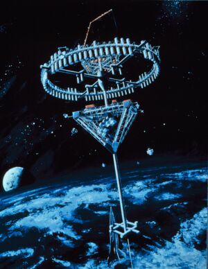 Image courtesy of Shimizu Corp. Architects A proposed orbital hotel (1989), on display at the Museum of Flight. |