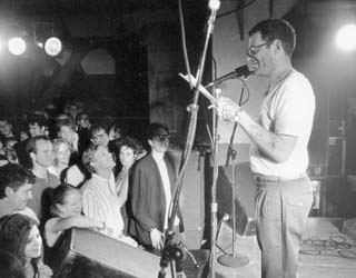 Influential poet Jesse Bernstein reads to an audience at the Georgetown Steamplant. The 1987 photo is party of an exhibition on his life at Seattle’s Experience Music Project. |