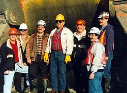 | The Totem team assembled inside the shovel bucket: Front row, left to right, are Becky Huntsman, Leone Williams, Sonja Wheatly, Wendy Hudspeth, Kevin Goetz and Stephanie Nolander. Back row, left to right: Calvin Dansereau, Curt Rehfeldt, Tom Williams, Dave Chappell, Jim Rutherford, Gary Norton, Art Stewart, Gregg Anstensen and Gary Tondini.