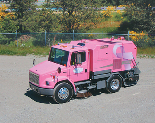 Tina McDonough, owner of One.7 Inc. of Ravensdale, is selling a pink street sweeper on June 18 to benefit breast cancer research.