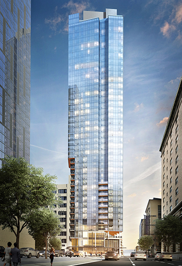 Colliers has announced that its team of Xinxin Li and Ryan Marn will lease the two retail bays at the high-rise Emerald condominium, now under construction at 121 Stewart St. That 40-story, 265-unit project by Create World should open to residents next summer. It topped out in July. Hewitt is the architect and Andersen Construction is the general contractor.