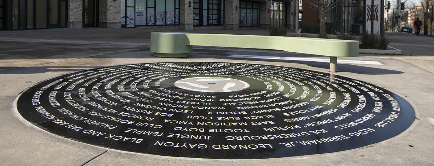 At its recently completed Jackson Apartments, Vulcan Real Estate announced the addition of a new piece by local artist Paul Rucker to its public art collection. His 78 anchors a large public plaza facing South Jackson Street, with its large vinyl record-shaped bearing spiraling text that honors local musicians associated with South Seattle and the Rainier Valley. It's one of 13 installations throughout the 532-unit development on the corner of 23rd Avenue South, which also includes local retailers and, soon, an Amazon Fresh grocery store. In all its projects, Vulcan says it commits half of 1% of all construction costs to public art commissions.
