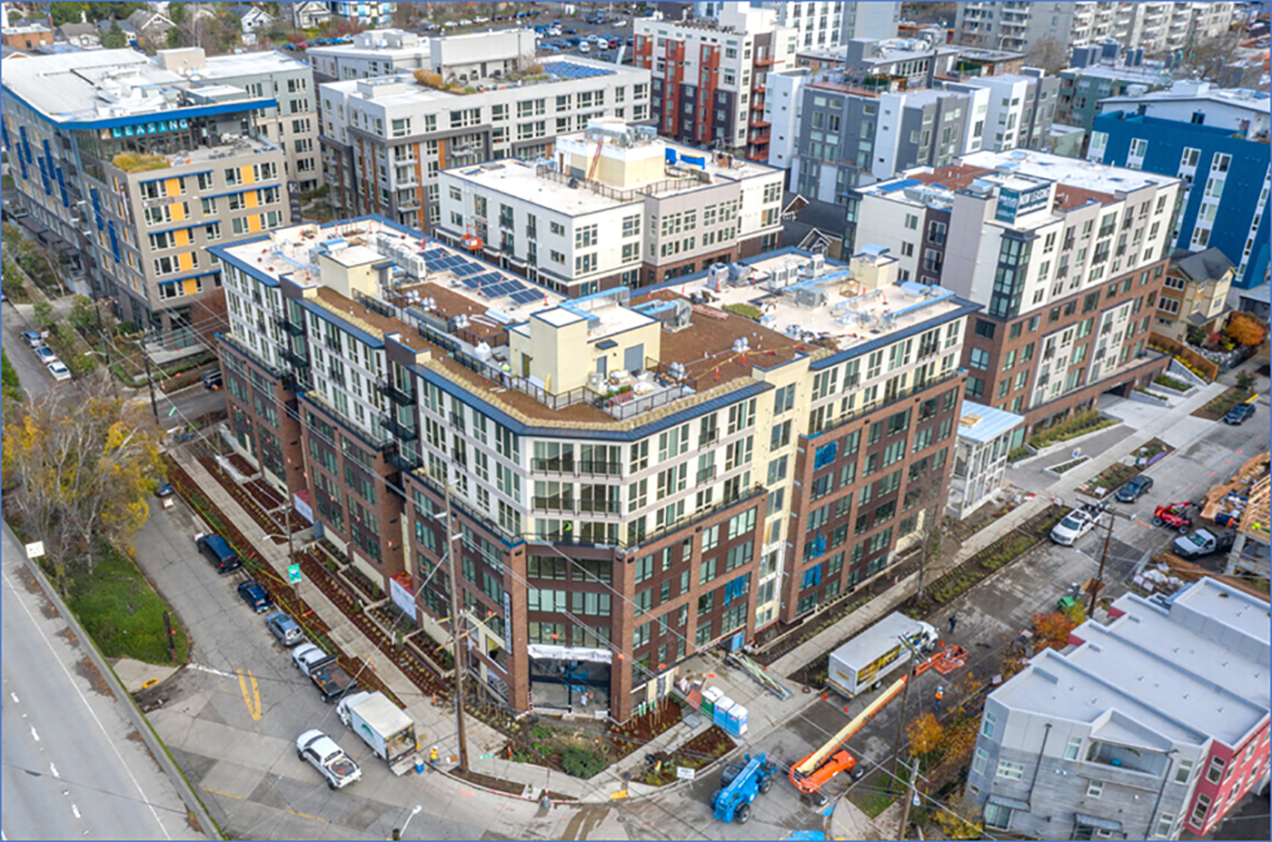The local office of NorthMarq recently announced that its Stuart Oswald and Ron Peterson had secured an $80 million loan for an unnamed apartment project in Roosevelt, with about 289 units in three related buildings. That would be Iron Flats, at 828 N.E. 66th St., which was developed by Emerald Bay Equity, designed by Skidmore Janette and built by the developer. What it calls the north and west buildings, closest to the freeway (and on the corner of Eighth Avenue Northeast), opened first. NorthMarq says they're stabilized. The east building opened more recently, and is now filling with tenants. Oswald said in a statement, “The development was originally financed with two construction loans that were maturing later this year. We encouraged the owners to let us explore take out financing well before stabilization and we were able to offer several attractive, non-recourse, cash-out financing solutions with flexible prepayment structures.” First Financial Northwest Bank was the initial lender. NorthMarq says the new loan carries a three-year term on an interest-only schedule. Public records indicate that Varde Partners of Minneapolis provided the loan, via an LLC, in a deal signed in May.