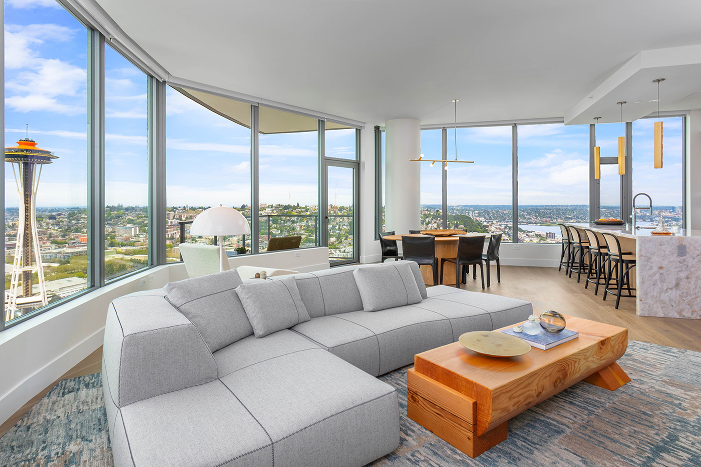 Laconia Development opened its 41-story, 343-unit Spire last August, with the condominiums being sold in tranches. Now on the market are premium penthouses on the uppermost floors. (The gym and amenities are on the very top floor.) Unit 3904 is priced at $3.85 million, says the developer. It's in a range between $1.2 million for 677 square feet and $4 million for a three-bedroom with 2,616 square feet. Luxury features in the penthouses include fully automated parking, Sub-Zero and Wolf appliances, fireplaces and deep soaking tubs in select penthouses. Laconia's Paul Menzies said in a statement, “Our penthouse collection is an inimitable blend of luxury and grand vistas. Spire is indisputably unrivaled in the market. For anyone looking for the pinnacle of luxury living in Seattle, this is it.” Polaris Pacific is selling the units, with about 50% now sold.
