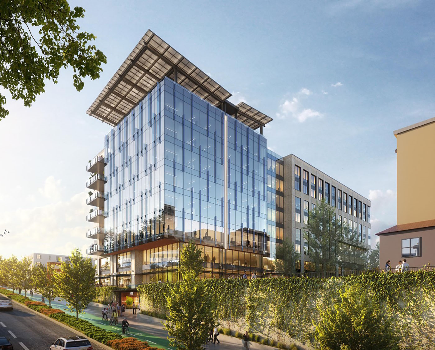 Schnitzer West recently announced that co-founder Dan Ivanoff has sold a minority stake in the company to five partners in the firm, which is based here and in Denver. They are Pam Hirsch, Greg MacDiarmid, Tyna Fisher, Zeb Keck and Doug Zabel. Ivanoff said in a statement, “By expanding the ownership team to include Pam, Greg, Tyna, Zeb and Doug, we have positioned Schnitzer West with the optimal potential to realize perpetual, sustainable success. The team is currently managing more than $2 billion of capital investment and executing approximately 3.2 million square feet of development and investment activity.” Among those is the two-building Interval on Mercer project in Lower Queen Anne; the east building is pictured.