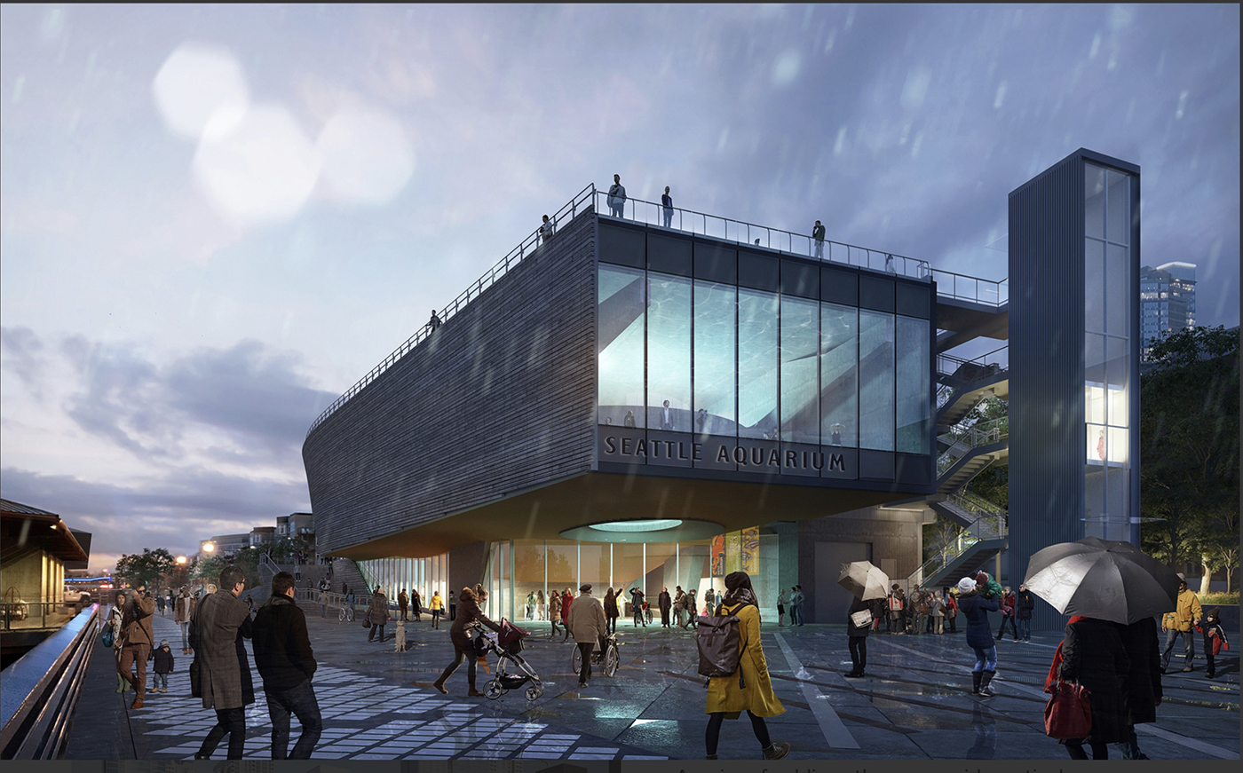 Come June 12, our local chapter of the Urban Land Institute will conduct a tour of the new LMN-designed Ocean Pavilion, which is nearing final form on the Seattle waterfront. Crews from Turner Construction are in the late stages of work on the 50,000-square-foot aquarium expansion project. It's to feature a 360,000-gallon coral reef ecosystem with about 3,500 tropical fish, invertebrates, sharks and rays. Walk past today, and you can see the translucent tank glowing from within. Next to it, the Overlook Walk is also nearly ready to open this summer. The Seattle Aquarium hasn't yet set an official opening date for the duo. Registration and info: northwest.uli.org.