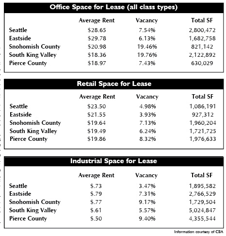 The Commercial Brokers Association is hosting its 11th annual Commercial Real Estate Insights breakfast today for the commercial real estate community. Insights is co-hosted by the Daily Journal of Commerce, Bentall Capital, the law firm Foster Pepper and Homestreet Bank. It brings together experts from different segments of the industry with local and national perspectives, to give their best insights into the business for the near and mid-term. Despite some cautiousness on the residential side of the real estate ledger, analysts on the commercial side continue their optimistic outlook for business in our region. This year’s speakers include: Linda Berman, president of Team I-Sight; John M. Parker, principal, president and CEO of Kennedy Associates Real Estate Counsel; and Dennis Wilde, principal with Gerding Edlen. Berman is a brand consultant who has worked with Disney, AT&T, Nike, Coca-Cola, MTV, the NFL and the New York Jets, among others, to redefine and refine their brands. Prior to starting her own firm, Berman served as vice president of branding and communication at Caruso Affiliated. She is a sought-after speaker on retail, trends, consumer behavior and what she calls the “urban landscape.” Parker was director of acquisitions at Kennedy Associates until last March, when he assumed the position of president and CEO. He focuses on the day-to-day operations as well as the strategic direction of the firm. As a member of the firm’s investment committee, he participates in all strategic considerations for the entire Kennedy portfolio. Wilde has a passion for sustainable urban development. From his graduate studies in architecture and urban planning to his current role at Gerding Edlen, environmental responsibility and smart design are central to his philosophy. As Gerding Edlen’s designated “green guy,” Wilde has encouraged increased sustainability in development projects while building a strong business case for the economic and social benefits of environmental responsibility. He has more than 20 years of experience in urban planning and design, and has been active in construction and real estate development since 1967. Formed by the commercial real estate brokerage community in 1977 to create a vehicle for member brokers to share information about available commercial properties with each other, CBA is celebrating its 30th year in business. With more than 4,600 members and a staff that researches nearly 15,000 properties for sale or lease, CBA provides the most comprehensive database of information on commercial real estate in the Pacific Northwest. With access to information on available properties, recent sales and statistical information about market performance, CBA members are able to provide their customers and clients with complete and accurate information about the commercial real estate marketplace.