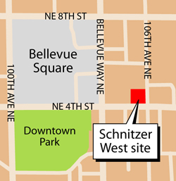 Schnitzer West has approached the city of Bellevue about constructing an office building downtown on property now occupied by Bank of America at 415 106th Ave. N.E.