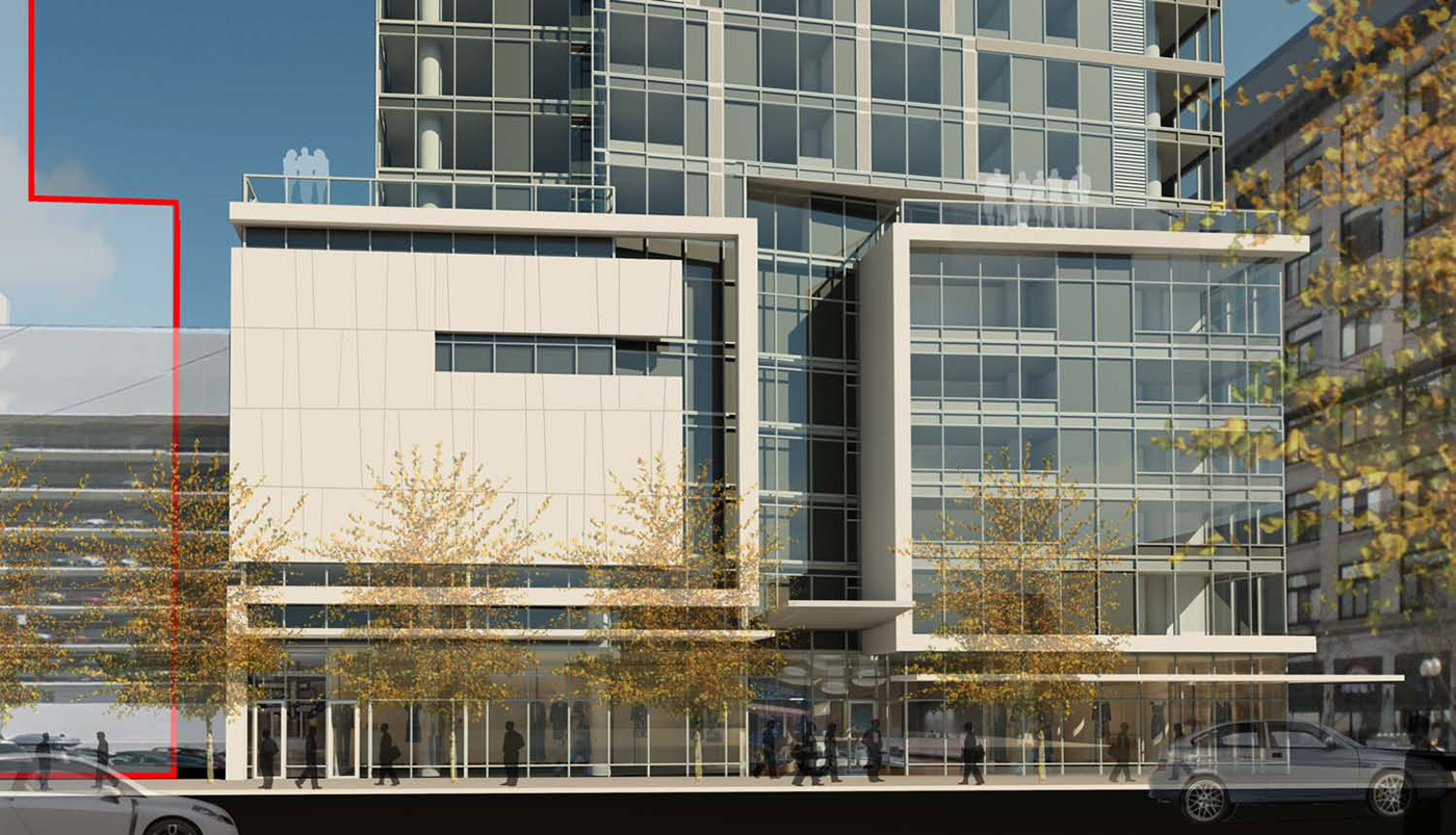 The proposal includes 4,000 square feet of street-level retail and 10 levels of parking, half of it below ground.