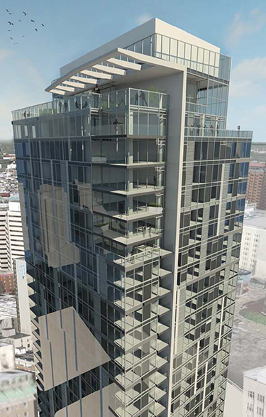 A six-floor amenity area is planned above the parking podium. The floor will house a gym, theater, yoga studio, pet wash, deck and the leasing office.