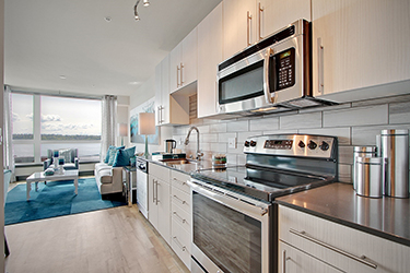 Some of those details are sparkling quartz countertops, more daylight, kitchens that entertain (even in a studio apartment), cozy conversation areas in communal spaces, and a dog lounge that is safe and secure at night.