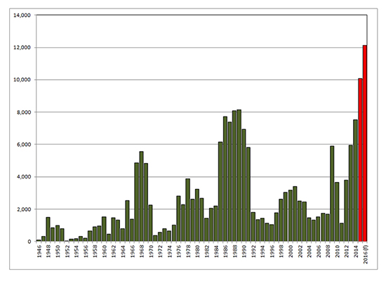 So what does this all mean? In as much as new supply is certainly at historic levels it’s clear that, so far, demand has pretty much kept up. But will that continue to be the case?