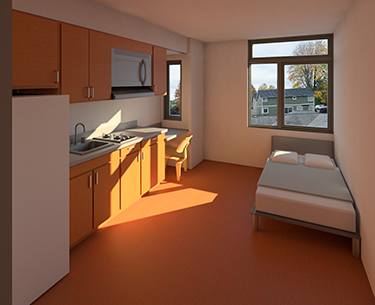 This is in contrast to “congregate-style” micro housing that has sleeping rooms with shared kitchens, which was the model for micro-housing in the city, and which Parkstone had been building.
