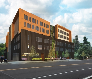The Portland projects include a new office building for SolTerra that began construction in late May at Southeast Ninth Avenue and Southeast Division Street. That LEED platinum building will have 35,000 square feet of office, retail and warehouse space. A large tree will be in the center, surrounded by glass.