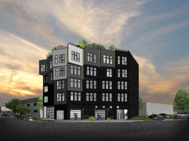 The four-story Woodlawn has 16 one- and two-bedroom apartments, and two live-work spaces. The firm says it also has the Northwest's largest living wall.