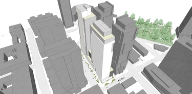 Whoever buys the site will share the block with another huge project. Just across the alley on the east, Clise Properties is planning two 40-story towers with 686 housing units.