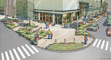 In exchange for this exception, the Antioch project would improve the corners of Battery and Bell streets along Sixth Avenue by adding open space, landscaping, and wider sidewalks. This would extend the park that now runs along four blocks of Bell Street.