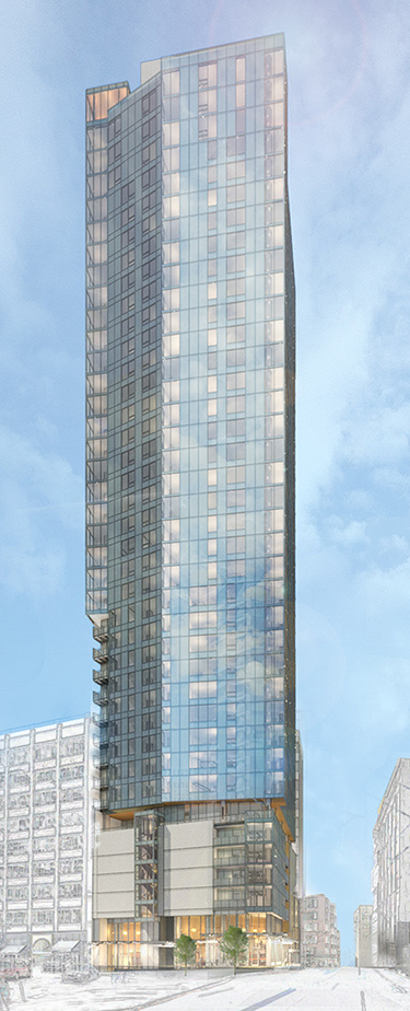 Residents will have their choice of community spaces, with a residential lounge planned for the second floor, a fitness center and terrace on the seventh floor, and indoor and outdoor amenity spaces on the roof.