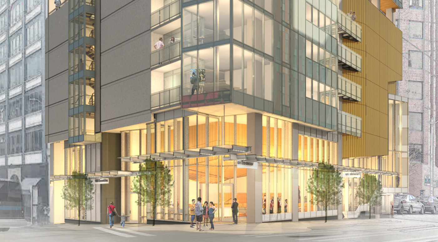 Residents would enter the lobby from Second Avenue, and retail storefronts are planned on Second and on Stewart, including a retail entrance on the corner of Second and Stewart.