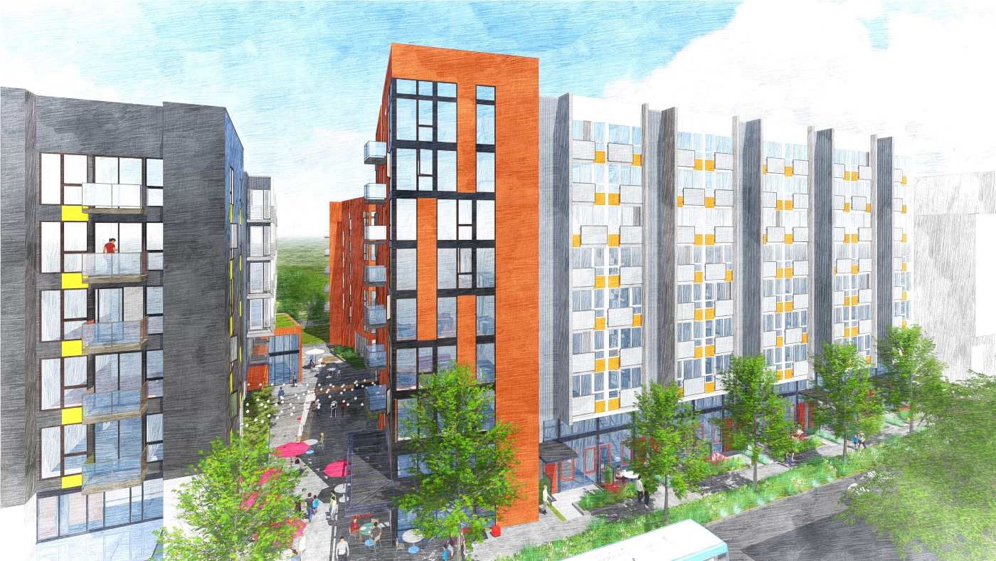 Early next year, construction will begin on a three-story building with a brewery or brewpub on the ground floor and creative office space above. That building is expected to be done next summer, a few months before the first apartments open.