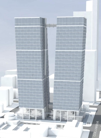 Westbank recently has shown a lot of interest in Seattle. The firm is proposing a pair of 41-story residential towers at 1200 Stewart St., with 876 units and 791 parking spaces. Early designs for this complex show the balconies would create a wavy, sculptural facade.