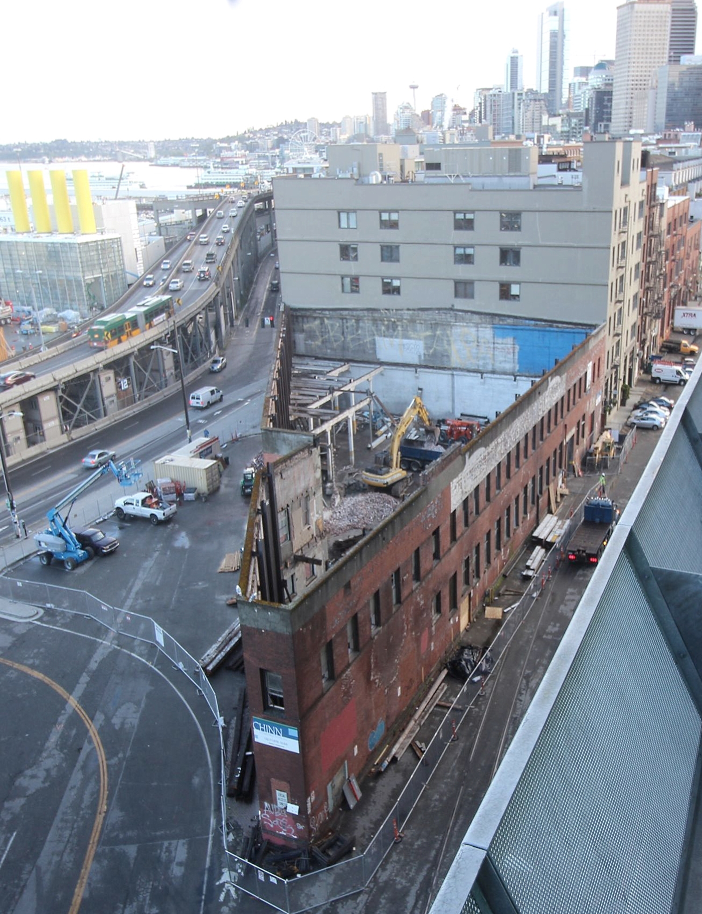 Chinn Construction has gutted the century-old Seattle Plumbing Co. building next to CenturyLink Field and is starting foundation work to create 107 condos for Daniels Real Estate.