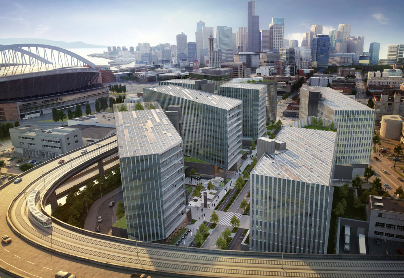 The complex is known as S, and the latest plans show 990,000 square feet in five buildings ranging from eight to 10 stories. The site is bounded by Airport Way South and Interstate 90, and the buildings would straddle Sixth Avenue South.