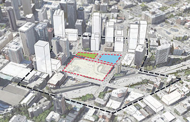 Underneath the two tower blocks will be loading areas for the convention center, so the project team still has work to do to determine exactly what the office/apartment developers will be buying. The underground loading areas will take up space typically used for parking, but Griffin said the buyers of the sites could work out an agreement with WSCC to use spaces in the original convention center and the expansion.