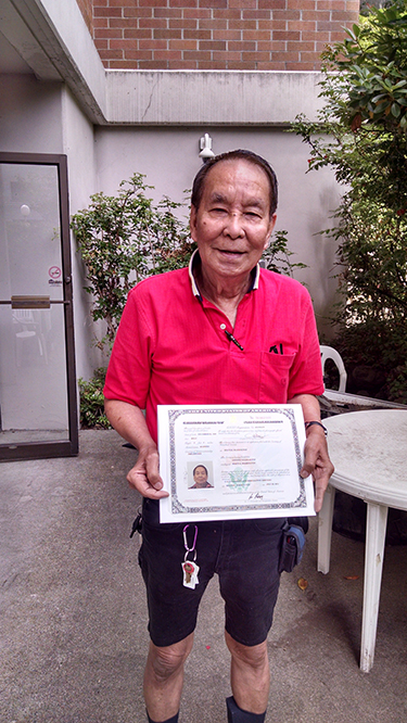 In 2014, our resident service coordinator aligned Foz with citizenship classes through Asian Counseling and Referral Services, and arranged for a tutor to come and educate him and other residents about written and oral requirements. In 2014, Foz fulfilled his lifelong dream of becoming a U.S. citizen.