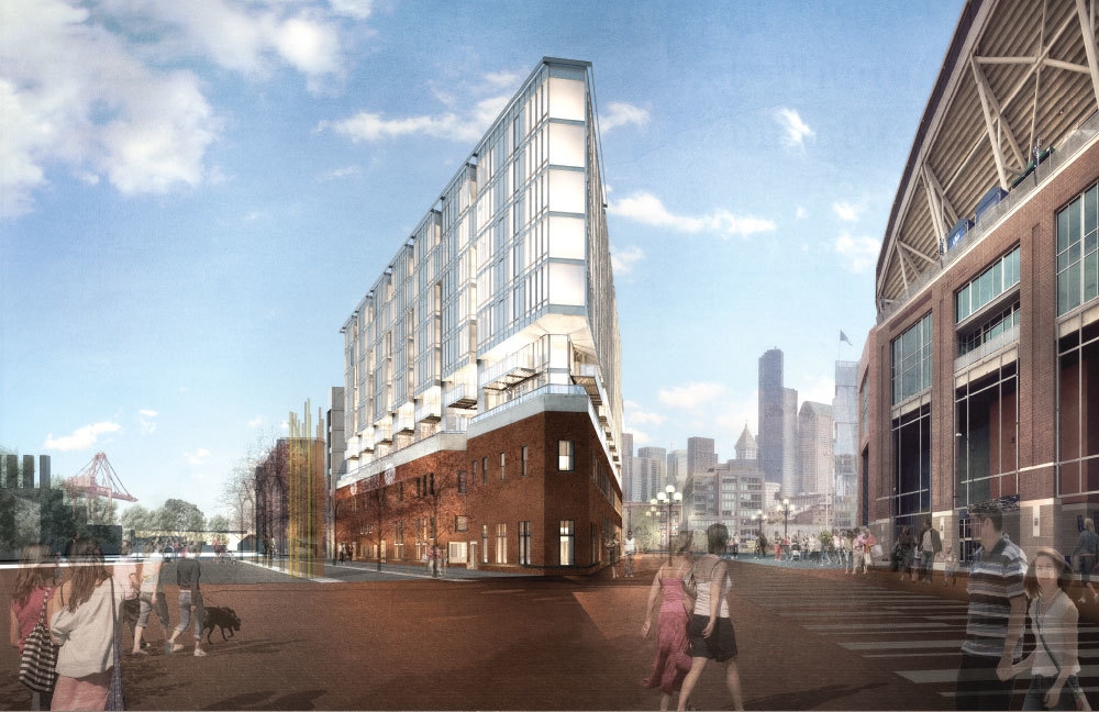 Meinert is planning four spaces with different names and identities that he'll announce later. Three will face Railroad Way and one will face Occidental. In general terms, he said the quartet will be “geared some toward neighborhood residents and some to the event traffic” — meaning SoDo sports and convention crowds, possibly including a future basketball arena and team.