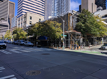 Construction crews have been busy for the past month removing stonework from a pair of buildings on Second Avenue that are on the site where Urban Visions eventually wants to build a 60-story high rise called 888 Tower.
