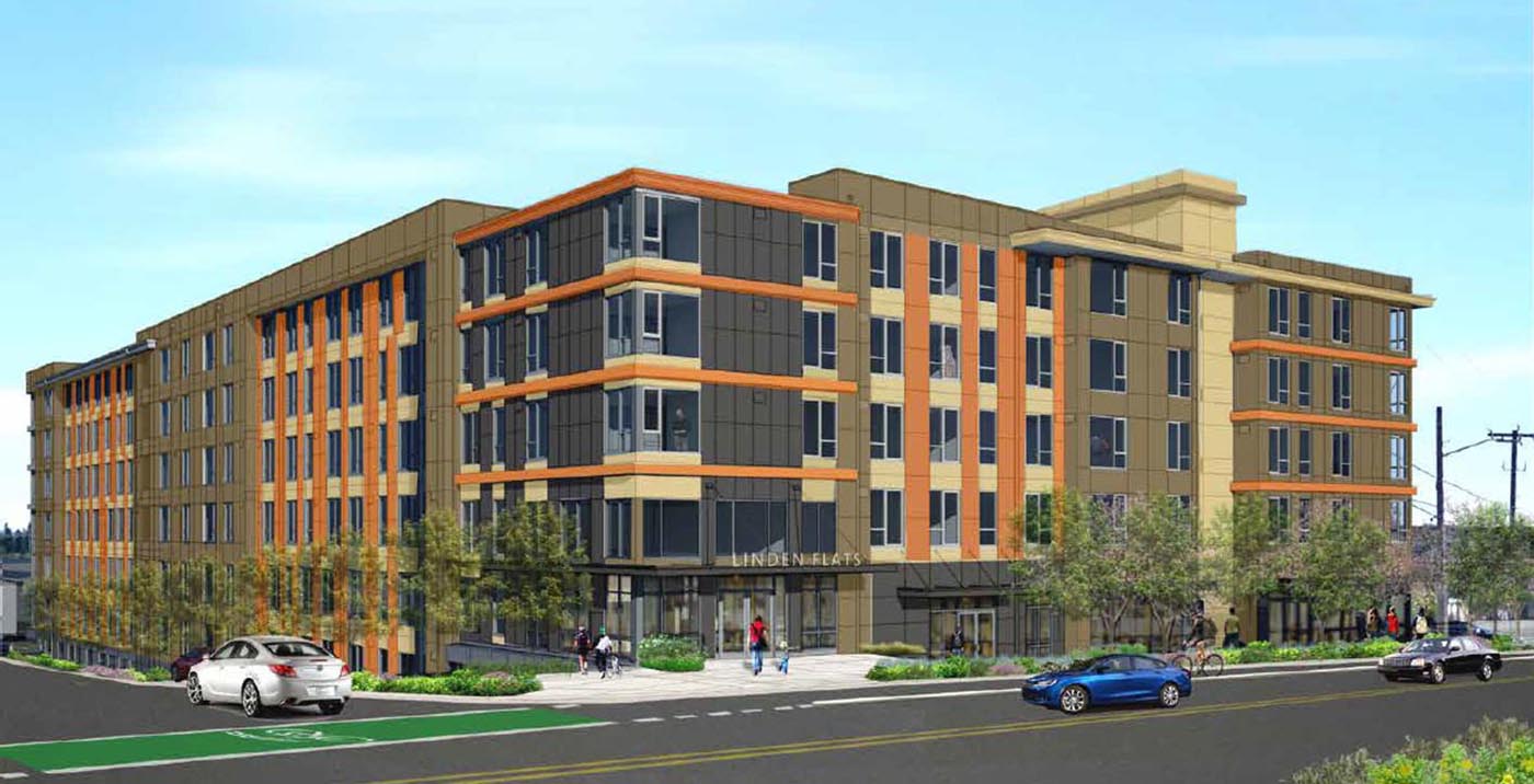 Linden Flats will be “100 percent affordable,” said GMD's Rebecca Ralston. Rents will be at or below 60 percent of area median income. The project team plans to use the city's multifamily tax exemption (MFTE) program and low-income bonds from the Washington State Housing Finance Commission.