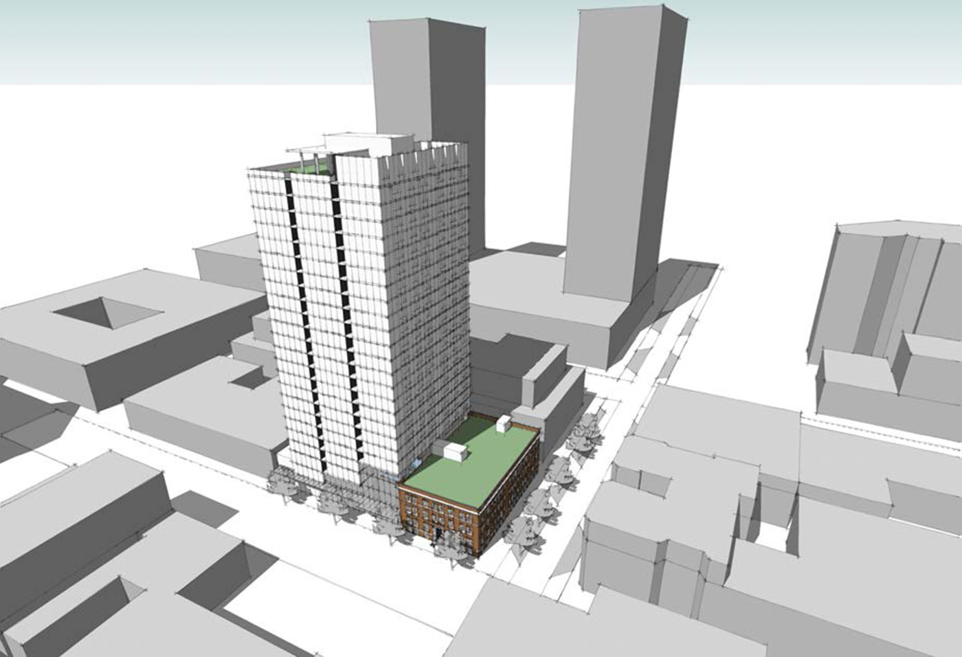 Now, a single 24-story tower is proposed next to the three-story Franklin, which was built in 1918 and is currently vacant.