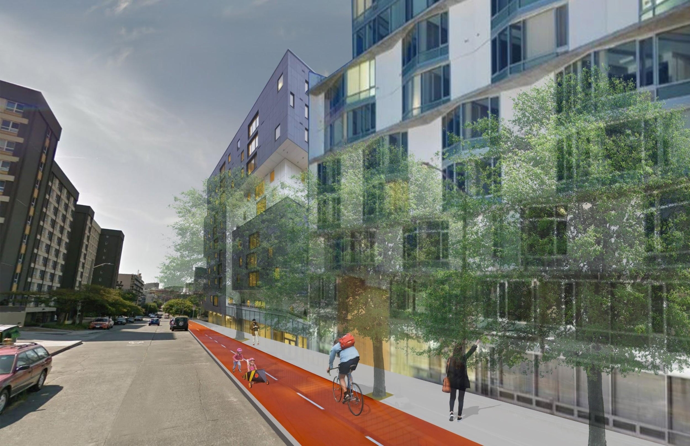 The park and trail will be constantly used, and visible from the adjacent housing, so there is less chance of experiencing potential dangers we see with large urban parks such as Freeway Park, where there is less activation and visibility. The Equity Line's linear park would offer the public a promenade experience and provide fantastic views to the west. The ped/bike trail would link south to the Mountains to Sound Greenway and new elevated ped/bike trail in the Jungle and continue north off-street all the way to the Melrose Trail and beyond.