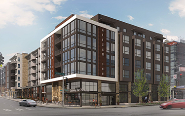 Trammell Crow Residential and Clark Design Group are preparing for a second-round design review meeting next Wednesday for Alexan 100, a 164-unit mixed-use apartment building at the intersection of Denny Way and First Avenue North in the Uptown area of Queen Anne.