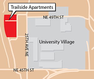 Dallas developer Phoenix Property Co. and local firm Trinity Partnership have announced an agreement to redevelop the existing Trailside Apartments complex at 4801 24th Ave. N.E. The 2.3-acre site lies along the Burke-Gilman Trail, one block west of University Village.