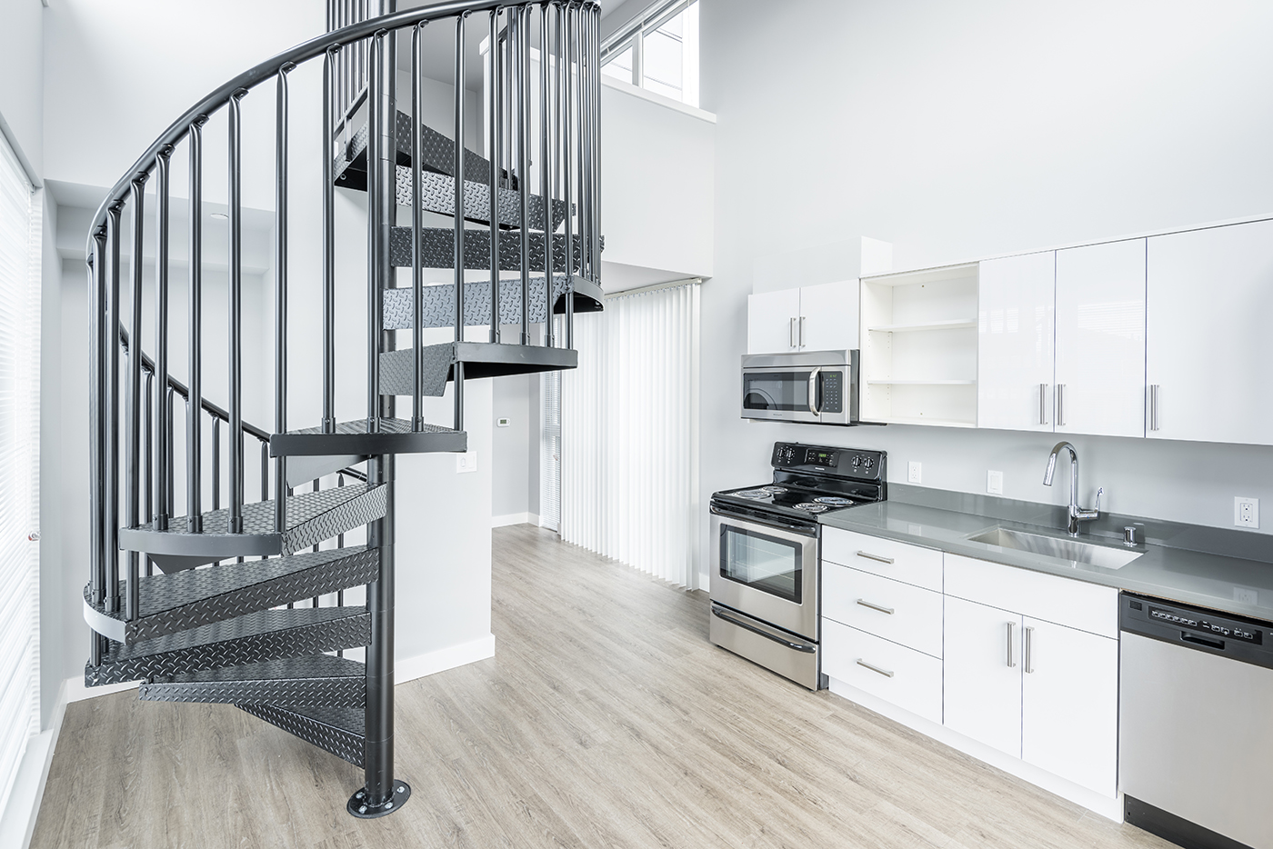 All the apartments are corner units. The 15 studios are 306 to 394 square feet and the two penthouse loft apartments are 508 and 587 square feet and have private rooftop decks.