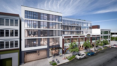 The new building will total 86,000 square feet, with 73,000 square feet of office space on the upper floors and 13,000 square feet of retail on the ground floor. A 2,000-square-foot balcony will be on the third floor, at the old facade's roofline, and the office building will have a rooftop deck with a dog walking area.