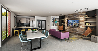 The study also found that the market wanted the same standard of luxury amenity spaces as found in the Seattle market. The response was to put quality, common area amenities into the Hailey, including a lounge, fitness room, yoga studio, pet wash station and quiet study areas. A level two deck includes a terrace with fire pits, indoor/outdoor seating, and outdoor cooking station.