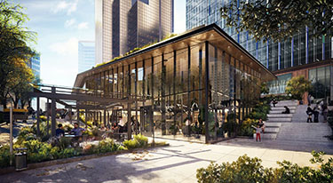 “Active use” space in the pavilion and tower will be around 24,000 square feet. For the tower, there will be about 15,900 square feet of terraces on levels three, 18, 31 and 42.
