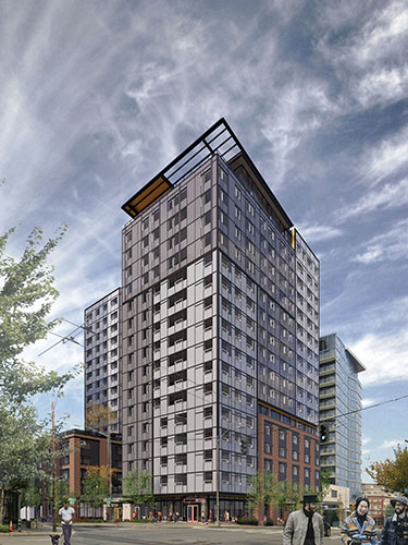 Bank of America is investing $58 million in indirect equity through Enterprise Community Partners, and providing $84 million in construction financing for a 17-story low-income apartment project under construction at Boylston Avenue and Madison Street in Seattle's First Hill neighborhood.