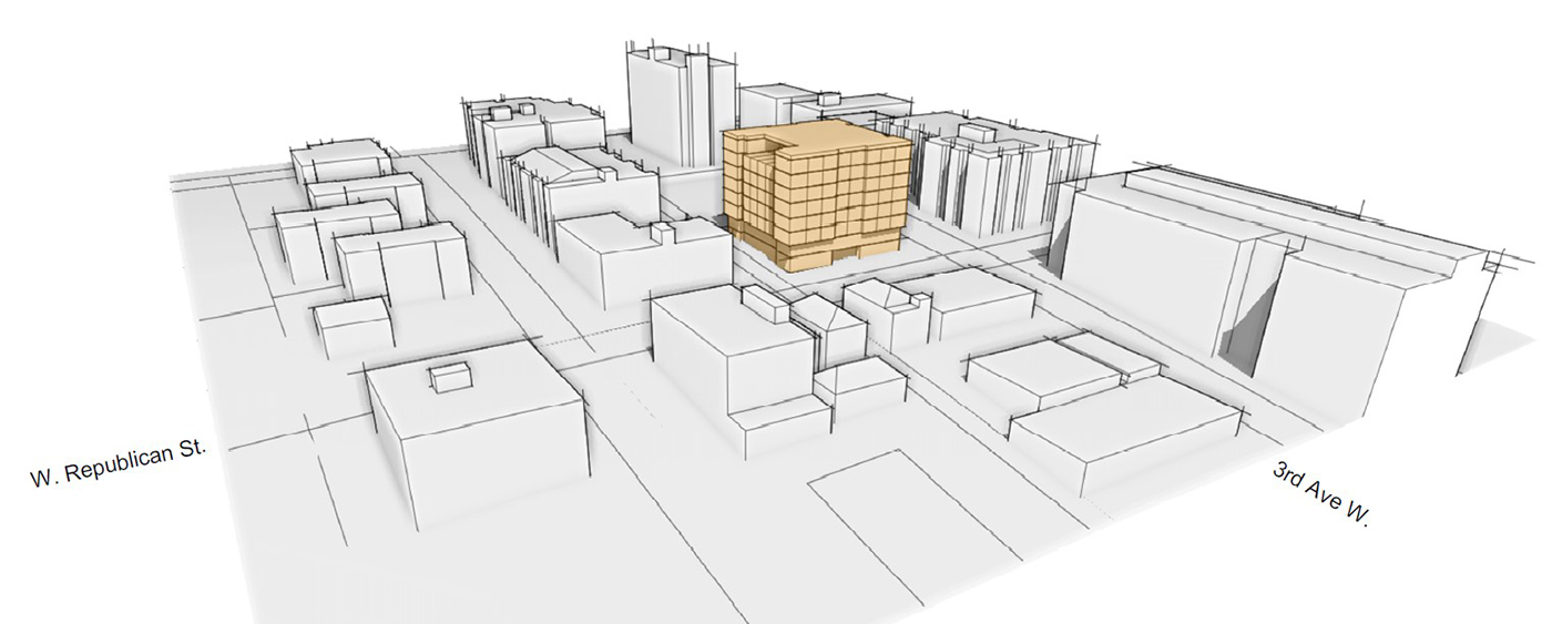 Koz says its site on Third will offer some residents views of downtown, the Space Needle and Elliott Bay.