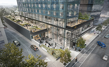Four levels of underground parking with 337 stalls will be accessed from 108th (there are no access alleys), making the garage entry the mouth of the building — with a bike lane to cross. A third floor terrace will overlook 108th, and second floor terraces will face south and west. No commercial space is planned.