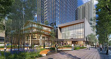 NBBJ’s street-level rendering of Phase I looks east down Northeast Sixth.