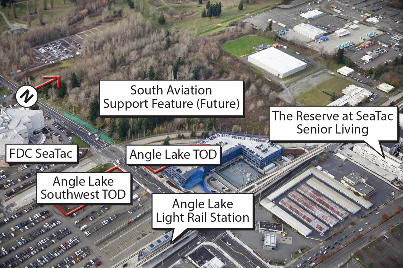 About two years ago, Sound Transit began to gauge interest among developers for two surplus parcels it owns at Angle Lake Station. The City of SeaTac is now mulling a plan to buy and develop what the agency calls the North and South Transit Oriented Development sites. They're on facing sides of South 200th Street, and haven't yet changed hands. The city previously put out a request for a consultant to help prepare proposals; that position hasn't yet been filled, the city said.
